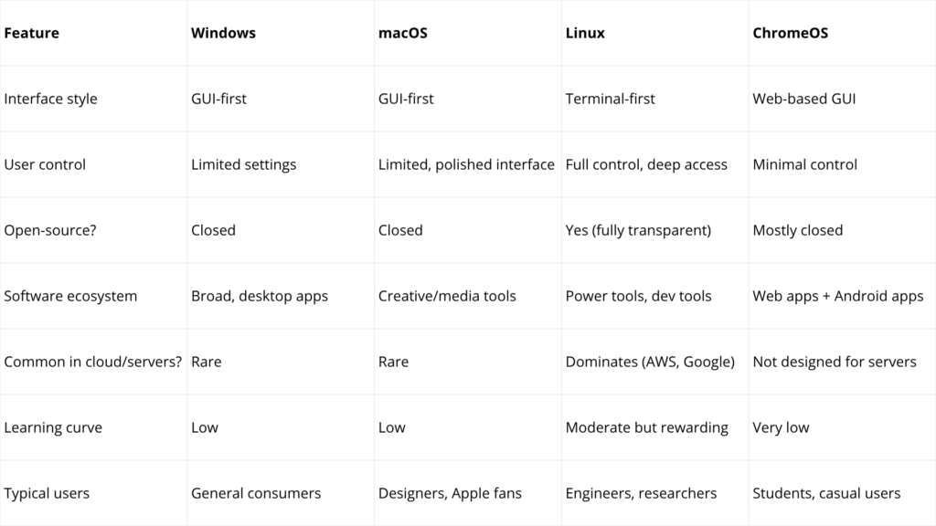Some are built for speed, some for stability, others for special uses (e.g., security, education, servers). You can learn more about this here.